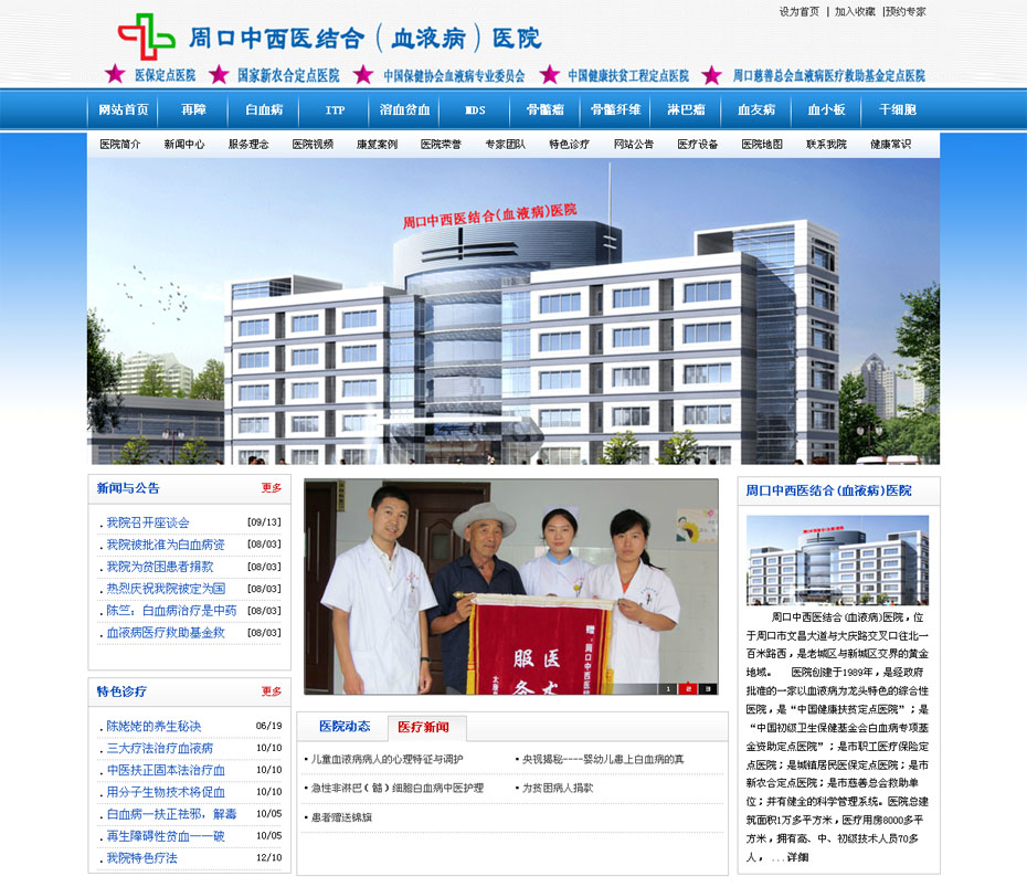案例介紹:周口中西醫(yī)結(jié)合(血液病)醫(yī)院,位于周口市文昌大道與大慶路交叉口往北一百米路西,是老城區(qū)與新城區(qū)交界的黃金地域。醫(yī)院創(chuàng)建于1989年,是經(jīng)政府批準(zhǔn)的一家以血液病為龍頭特色的綜合性醫(yī)院,是“中國健康扶貧定點(diǎn)醫(yī)院”;是“中國初級(jí)衛(wèi)生保健基金會(huì)白血病專項(xiàng)基金資助定點(diǎn)醫(yī)院”;是市職工醫(yī)療保險(xiǎn)定點(diǎn)醫(yī)院;是城鎮(zhèn)居民醫(yī)保定點(diǎn)醫(yī)院;是市新農(nóng)合定點(diǎn)醫(yī)院;是市慈善總會(huì)救助單位;并有健全的科學(xué)管理系統(tǒng)。