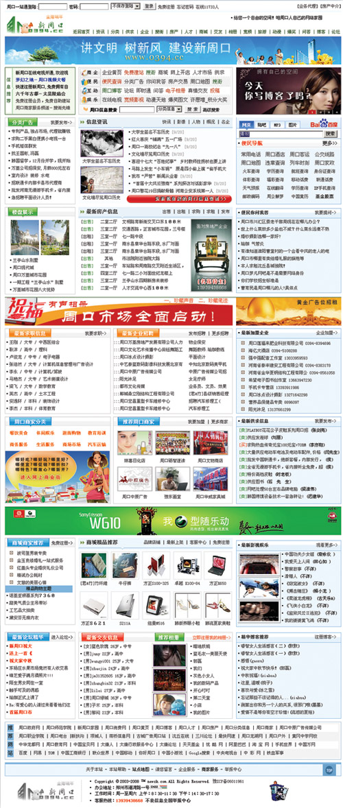 案例介紹:新周口致力為周口人民打造一個時尚便捷健康的網(wǎng)絡(luò)家園,立足本地,服務(wù)周口,為周口的經(jīng)濟(jì)建設(shè)貢獻(xiàn)力量。新周口包括分類廣告、供求信息、企業(yè)黃頁、網(wǎng)上商業(yè)街、房產(chǎn)、人才、商城、交友、相冊、電影、旅游、動漫爆笑、你問我答、博客、論壇等欄目。為企業(yè)提供的免費建站,為商家提供的免費商城,為個人提供的博客人才,相冊等等,是真正的為周口各個層面所服務(wù)的網(wǎng)絡(luò)平臺。