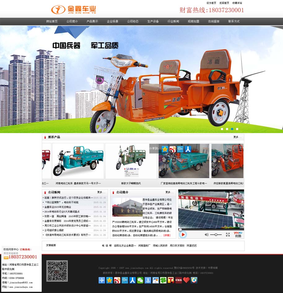 案例介紹:西華縣金鑫車業(yè)有限公司位于西華縣產(chǎn)業(yè)集聚區(qū),是一家專業(yè)研發(fā)、生產(chǎn)和銷售電動三輪車、三輪摩托車的綜合性企業(yè)。