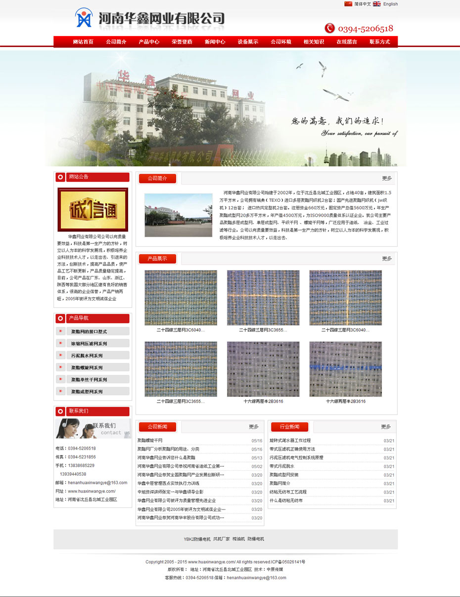 案例介紹:河南華鑫網(wǎng)業(yè)有限公司始建于2002年,位于沈丘縣北城工業(yè)園區(qū),占地40畝,建筑面積1.5萬平方米,公司擁有瑞典(TEXO)進口多層聚酯網(wǎng)織機2臺套;國產(chǎn)先進聚酯網(wǎng)織機(jw織機)12臺套;進口熱風定型機2臺套。注冊資金660萬元,固定資產(chǎn)總值5600萬元,年生產(chǎn)聚酯成型網(wǎng)20多萬平方米,年產(chǎn)值4500萬元,為ISO9000質(zhì)量體系認證企業(yè)。我公司主要產(chǎn)品聚酯多層成型網(wǎng)、單層成型網(wǎng)、平織干網(wǎng)、螺旋干網(wǎng)等,廣泛應用于造紙、冶金、工業(yè)過濾等行業(yè)。