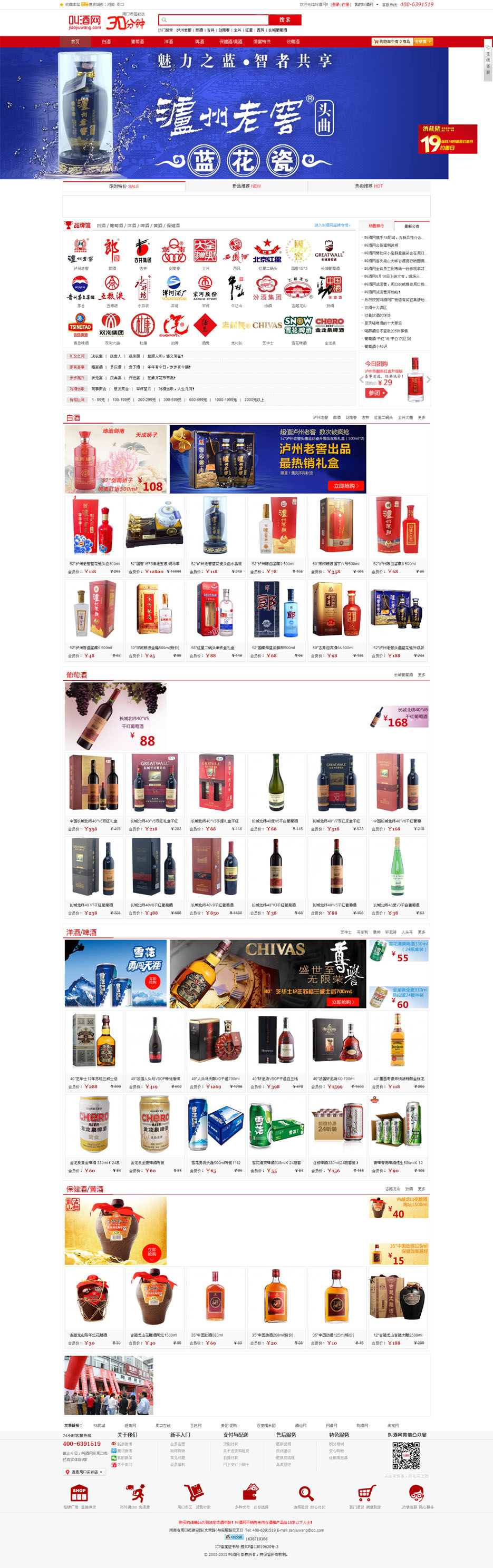 案例介紹:叫酒網(wǎng)隸屬于周口橋西酒藏儲有限公司,以現(xiàn)代電子商務(wù)為媒介,專業(yè)運營中國名酒及其系列產(chǎn)品,目前主營國產(chǎn)名優(yōu)白酒、進口葡萄酒、高檔洋酒、國產(chǎn)葡萄酒、啤酒、黃酒、保健酒等。