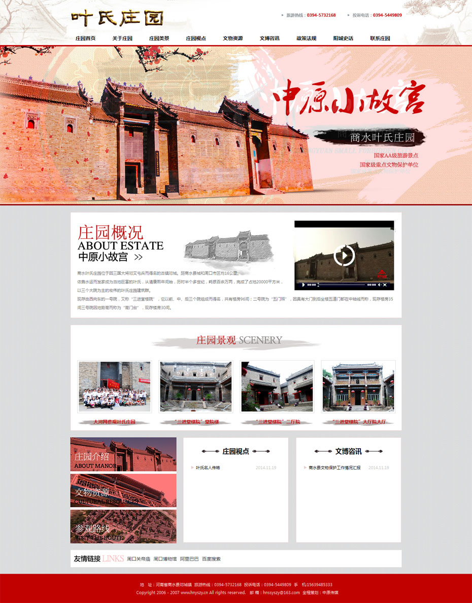 案例介紹:商水縣葉氏莊園位于因三國大將鄧艾屯兵而得名的古鎮(zhèn)鄧城。距商水縣城和周口市區(qū)均16公里。 依靠水運而發(fā)家成為當(dāng)?shù)鼐薷坏娜~氏,從清康熙年間始,歷時半個多世紀(jì),耗銀百余萬兩,完成了占地20000平方米,以三個大院為主的宏偉的葉氏莊園建筑群。